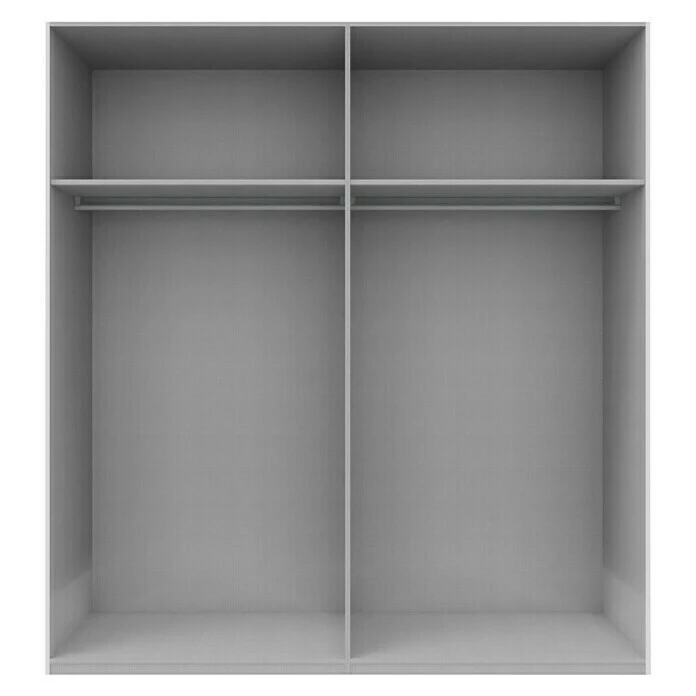 Der Kleiderschrank Swift von Express Möbel ist ein moderner Drehtürschrank mit einem frei zu nutzendem Innenraum. In den oberen Ablagefächern können Decken, Hüte oder Ähnliches sicher verstaut werden. Die Kleiderstangen eignen sich zur knitterfreien Aufbewahrung der Kleidungsstücke. Der aufgeteilte Innenbereich wird von den Türen verdeckt. Die Drehtüren mit alufarbenen Griffen und Dekorbeschichtung sind mit einer Soft-Close-Funktion ausgestattet, die für geräuscharmes und sanftes Schließen sorgt. Der Swift ist aus Holzwerkstoff gefertigt und verfügt über hochwertige Metallbeschläge. Er ist wiederaufbaubar und somit umzugstauglich.