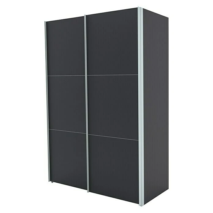 - Moderner Schwebetürenschrank von BAUHAUS mit stilvollen Aluminiumfarben Griffen und Graphit-Front.