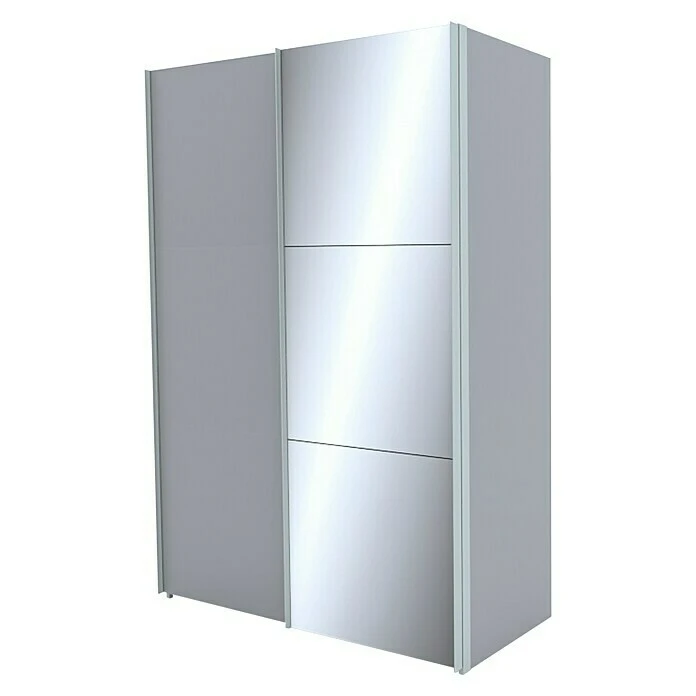 - In den Farben Seidengrau für die Front und das Korpus sowie mit einem eleganten Spiegel und Aluminiumfarbenen Griffen, fügt sich dieser Schrank perfekt in jedes moderne Zuhause ein.