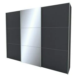 - Modernes Design: Der BAUHAUS Schwebetürenschrank Stars kombiniert Graphitfronten mit Spiegelelementen und Aluminiumfarben Griffen für ein zeitgemäßes Aussehen.
