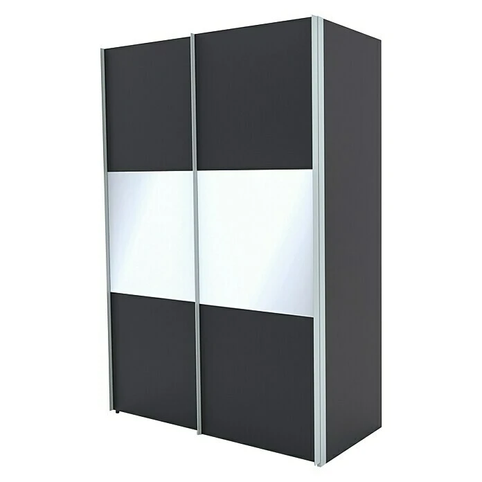 - Der Korpus des Schwebetürenschranks ist in Graphit gehalten, was nicht nur robust, sondern auch zeitlos elegant wirkt.