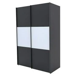 - Stilvoller Schwebetürenschrank mit modernem Design in den Farben Graphit und Weiß.