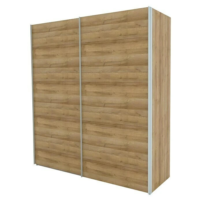 Der Kleiderschrank Stars von Express Möbel ist ein moderner Schwebetürenschrank der in verschiedenen Dekoren und Ausführungen erhältlich ist. Dank der Dämpfungsbeschläge schließen die Schranktüren besonders sanft und leise und zeichnet sich durch hohe Laufruhe und wunderbar leichten Bedienkomfort beim Öffnen und Schließen aus. Die angenehm gerundete Metallgriffleiste liegt dabei bestens in der Hand. In den oberen Ablagefächern der Schränke können Decken, Hüte oder Ähnliches sicher verstaut werden. Die Kleiderstangen eignen sich zur knitterfreien Aufbewahrung der Kleidungsstücke. Der aufgeteilte Innenbereich wird durch die Türen verdeckt. Die Schwebetüren sind mit einem Staubschutz ausgestattet, welcher das Verstauben des Innenbereichs verhindert. Der Stars ist aus Holzwerkstoff gefertigt und verfügt über hochwertige Metallbeschläge. Er ist wiederaufbaubar und somit umzugstauglich.