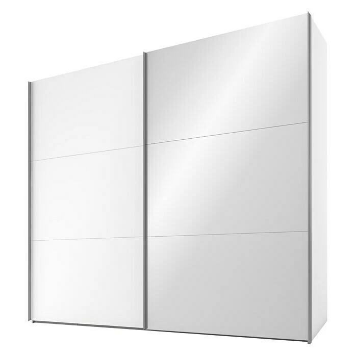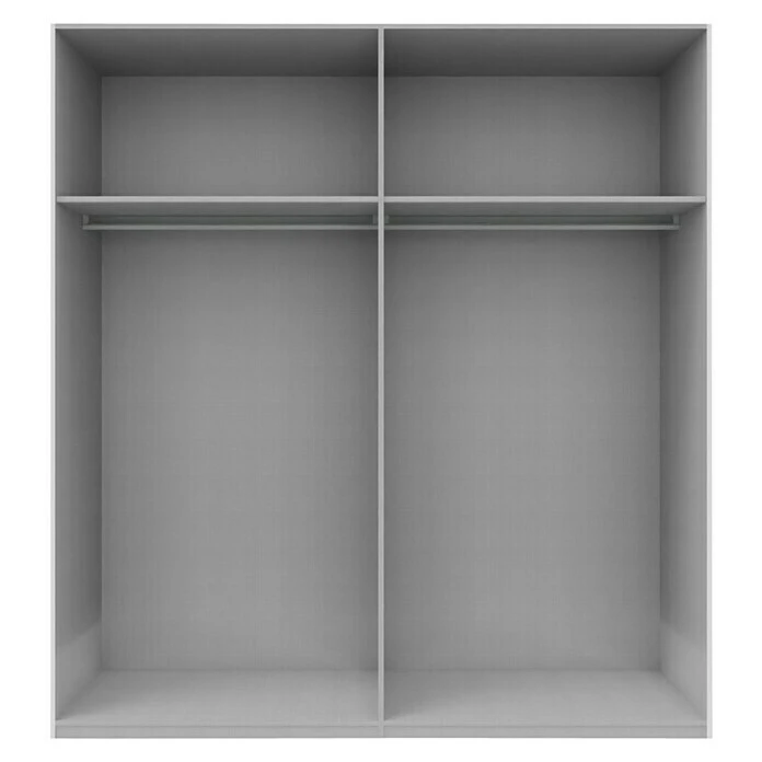 Der Kleiderschrank Swift von Express Möbel ist ein moderner Schwebetürenschrank mit Spiegel und einem frei zu nutzendem Innenraum. In den oberen Ablagefächern können Decken, Hüte oder Ähnliches sicher verstaut werden. Die Kleiderstangen eignen sich zur knitterfreien Aufbewahrung der Kleidungsstücke. Der aufgeteilte Innenbereich wird durch die Türen verdeckt. Die Schwebetüren sind mit einem Staubschutz ausgestattet, welcher das Verstauben des Innenbereichs verhindert. Der Swift ist aus Holzwerkstoff gefertigt und verfügt über hochwertige Metallbeschläge. Er ist wiederaufbaubar und somit umzugstauglich.