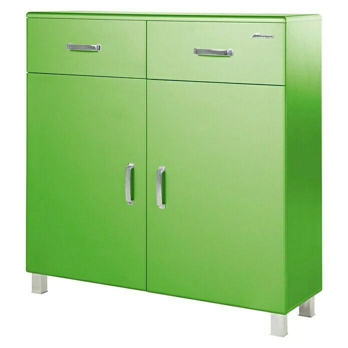 Der Schuhschrank Miami von Phönix weist neben den Fächern durch die zwei Schubladen hinreichend Stauraum auf. Die Schubladen lassen sich voll herausziehen und sind dadurch leichter zu befüllen. Die Türen und Schubladen schließen mit der Soft-Close-Funktion, wodurch das Möbelstück vor Schäden geschützt ist. Der Schrank ist in schickem Retro-Look gehalten und mit einer schützenden Autometallic-Lackierung versehen, die das Möbelstück nicht nur vor Beschädigungen schützt, sondern es gleichzeitig auch zu einem echten Hingucker macht. Die Füße und Handgriffe sind aus chromfarbenen Kunststoff, wodurch das Möbelstück nochmals optisch aufgewertet wird. Die Autometallic-Lackierung, mit der der Schrank versehen ist, ist in ihrem Design auf andere Möbelstücke der Miami-Serie von Phönix abgestimmt.