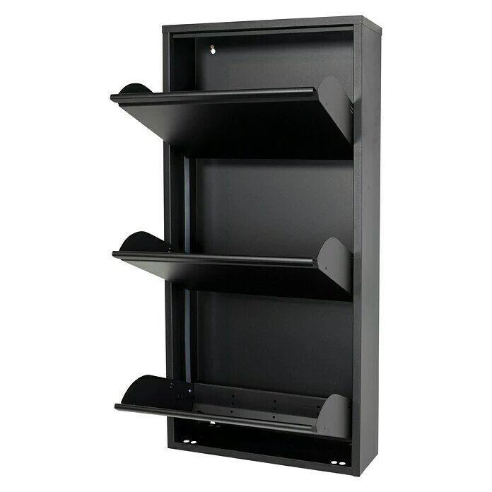 Der Schuhschrank Billy 3 von Spinder Design eignet sich ideal für das Verstauen von Schuhen, Hausschuhen und Stiefel. Auf den 3 Ablageflächen finden bis zu 6 Paar Schuhe Platz. Damit ist für Ordnung gesorgt und ein unordentlicher Schuhberg auf dem Flur gehört der Vergangenheit an. Der aus pulverbeschichtetem Stahl gefertigte Schuhschrank wird an die Wand montiert. Ein funktionelles und platzsparendes Design zeichnen den Schuhschrank Billy 3 aus. So verdankt er seine schlanke Form den kippbaren Fächern.
