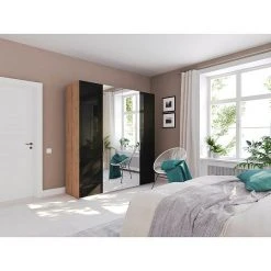BAUHAUS Express Möbel Drehtürschrank Swift – Basaltglas & Eiche Jackson – 200 x 58 x 216 cm